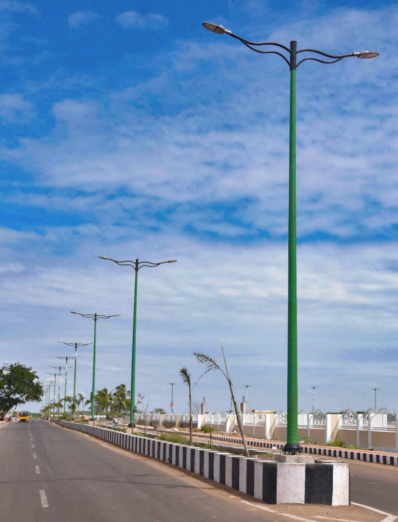 Helipole’s round tapered composite lighting poles combine elegance and engineering excellence. Crafted with CNC filament winding technology, these poles feature a smooth taper from base to top for optimized strength and aesthetics. They are UV protected and corrosion resistant, engineered for an expected service life of 50 years.