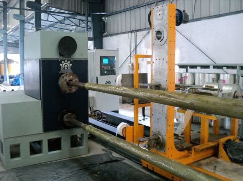 The Filament Winding Process is a computer-controlled manufacturing technique where continuous strands of E-glass fibers are wound under tension around a rotating mandrel in predetermined patterns. The fibers are impregnated with high-quality resin and layered precisely to achieve superior structural integrity and load-bearing capacity.